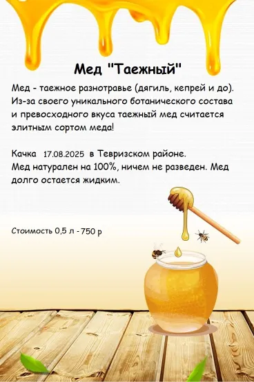 Мед "Таежный", дягиль, кепрей и др. Качка в августе 2025г в Тевризском районе